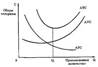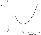 Поскольку общие постоянные издержки не изменяются, то при делении их на увеличивающийся объем производства средние постоянные издержки будут падать по мере увеличения количества выпускаемой продукции, ибо фиксированная сумма издержек распределяется на все большее и большее количество единиц продукции. И наоборот, при сокращении объема производства средние постоянные издержки будут расти. Средние переменные издержки (AVC) - это общие переменные издержки на единицу продукции. Они определяются путем деления переменных издержек на соответствующее количество выпущенной продукции: AVC = VC / Q. Средние переменные издержки вначале падают, достигая своего минимума, затем начинают расти.
