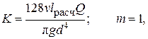 Для турбулентного течения, заменяя v через расход, получаем