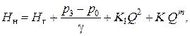 где Н Г = Н 1 + Н 2 – полная геометрическая высота подъема жидкости (см. рис. 9.6 – 1),