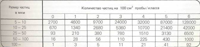 — число частиц, — скорость течения рабочей жидкости в отдельных эле — давление в гидросистеме, перепад давления, — зазоры, конструктивные особенности. Исследования рабочих жидкостей вскрыли зависимость между объемом загрязнений, размером и числом частиц. В соответствии со стандартами SAE различают 7 классов загрязнений: