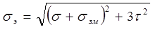 где dз.от = dзм /dт – относительный диаметр замка. а искомое наибольшее изгибное напряжение в трубе σзм – по формуле [2]: σзм = σиз * φδq. (4.13) Таким образом, в верхнем сечении участка набора зенитного угла имеются напряжение σзм, растягивающее напряжение, определяемое на основании усилия по формуле (4.2) и касательное напряжение, вычисленное в соответствии с разделом 4.4. Эквивалентное напряжение σэ для сечения, находящегося в сложном напряженном состоянии, определяют по формуле: