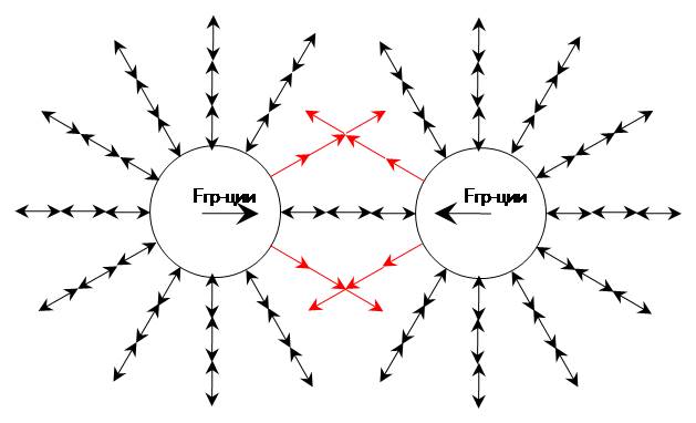При гравитационном взаимодействии искривляется не пространство, а "состояние поля" (поле планковских частиц – "эфир"; планковские частицы – корпускулы); силы – следствие взаимодействия; идет взаимодействие "структурных" сил ("матрица состояния"):