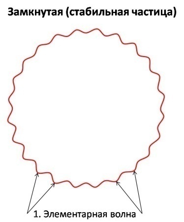 Второй уровень – элементарная частица – 105 элементарных волн: замкнутых (стабильные частицы) или разомкнутых (не стабильные):