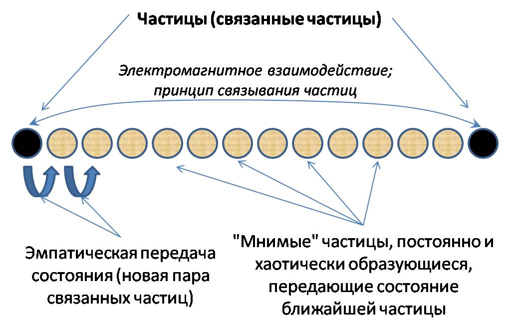 Аналогично с последним рисунком объясняется связывание частиц (их взаимодействие, телепортация состояния), а также распространение электромагнитного взаимодействия (статичного и динамического). Все частицы связаны: