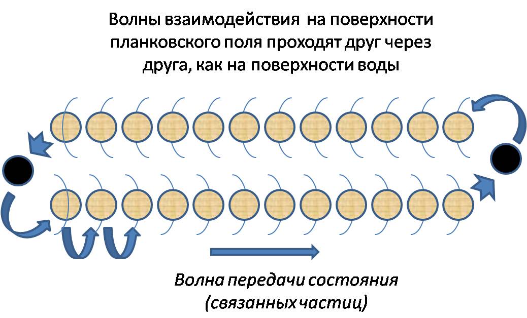 Формирование первого уровня начинается со взаимодействия планковских частиц и образования первого "вихря" на следующем уровне, состоящем из 100 000 таких единиц в длину – элементарной волны (хаос взаимодействия метагалактик "разряжается" в порядок):