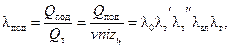 где v ф – объем газа подаваемый во внешнюю сеть; v1 – объем газа, поступающего в цилиндр. 5.7. Коэффициент подачи и коэффициент производительности компрессора Количество газа, подаваемого во внешнюю сеть, измеряемый в м3/мин газа, в зависимости от начальных условий состояния (р нач, Тнач, φнач), которые являются переменными – величина переменная. Коэффициент подачи составит где Q под – объем свободного газа, подаваемого в сеть компрессором при давлении, температуре и влажности данного газа, м3/мин; Q т – теоретическая производительность компрессора; v – объем, описываемый поршнем; n – частота вращения рабочего вала компрессора, об/мин, i – число действий за один оборот; zц – число цилиндров первой ступени компрессора. Большим показателем качества работы поршневого компрессора является значение коэффициента полезного действия. Различают индикаторный (внутренний) и общий (эксплуатационный) КПД компрессора. Индикаторный КПД характеризует степень совершенства проточной части машины при движении газа через фильтр, всасывающий патрубок и клапаны как всасывающие, так и нагнетательные, а также через нагнетательный патрубок до газосборника.
