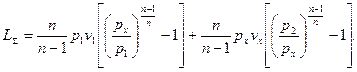 и Таким образом, минимальная работа двухступенчатого сжатия соответствует одинаковой степени сжатия по ступеням. При наличии z ступеней, повышение давления в каждой ступени составит Суммарная полезно затраченная работа двухступенчатого компрессора определяется как удвоенная работа первой ступени, то есть удельная объемная работа