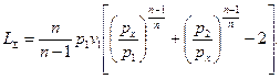 Экономию работы в двухступенчатом компрессоре по сравнению с одно ступенчатым можно подсчитать, зная, что работа определяется по формуле аналогичной (66) и по формуле (92)