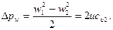 Тогда си 1 = и - си 2 и си 2 = и - си 1. Преобразование относительной скорости происходит при движении по лопасти колеса. Из плана скоростей w 12= си 22+ca2 и w 22= си 12+ca2 или w 12- w 22 = си 22- си 12 Приращение давления от изменения относительной скорости (122) в Дж/кг составит
