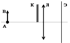 Тонкая линза Л даёт чёткое действительное изображение предмета АВ на экране Э (см. рис. 1). Что произойдёт с изображением предмета на экране, если верхнюю половину линзы закрыть куском чёрного картона К (см. рис. 2)? Постройте изображение предмета в обоих случаях. Ответ поясните, указав, какие физические закономерности вы использовали для объяснения.