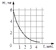 На рисунке показан график изменения массы находящегося в пробирке радиоактивного вещества с течением времени. Период полураспада этого вещества равен