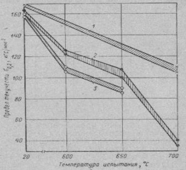Рисунок 3 Предел текучести при нагреве штамповых сталей. Закалка на мелкое зерно и отпуск на твердость