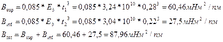 Определяем расчетные изгибающие моменты для верхнего и нижнего слоев покрытия: