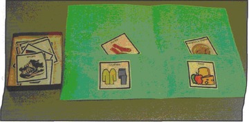 МАТЕРИАЛЫ: - фотографии предметов двух категорий (например, одежда, продовольствие, животные, игрушки и т.д.) - бумага с двумя кармашками, каждый из которых помечены рисунками для идентификации - контейнер для смешанных карточек ЦЕЛЕВЫЕ НАВЫКИ: - начальное понимание визуального определения признака ИДЕИ ДЛЯ ДИФФЕРЕНЦИАЦИИ: Для учеников, которые смогут сортировать по более сложным категориям, задача может включать сортировки вещей на кухне и в ванной, спортивный инвентарь, зимняя одежда и одежда летняя и т.д. Читающие ученики могут сортировать слова вместо фотографий.