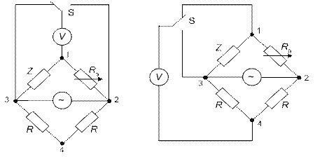 Принципиальная схема неуравновешенного моста (НМ) при измерении модуля сопротивления | Z x| приведена на рис. П.3.1, а.