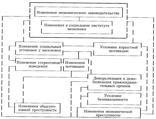 Преступность, в том числе экономическая, как негативная разновидность социальных явлений нуждается в установлении причин и условий, ей способствующих. Практическая значимость этого достаточно очевидна. Эффективная деятельность правоохранительных органов по предупреждению экономических преступлений возможна на научно обоснованных рекомендациях по выявлению причин и условий совершения преступлений[78]. Экономическая преступность и ее детерминанты в нашей стране подвергались изменениям и в основе своей были зависимы от места (подчиненности) и роли законов экономики в иерархии управления экономикой в государстве. Соответственно таким изменениям формировалось законодательство по экономической преступности и представления о личности экономического преступника, нашедшие отражение в Уголовном кодексе РСФСР 1926 и 1961 годов. Реформирование жестконормативной государственно-монополистической экономики началось в СССР в 1987 году, когда вступил в силу Закон "Об индивидуальной трудовой деятельности", и усилилось в 1988 году, после принятия Закона "О кооперации в СССР", впервые за многие годы давших простор деловой инициативе части населения страны. С 1991 года, после юридического закрепления государственности РСФСР, принятия законов "О собственности в РСФСР", "О предприятиях и предпринимательской деятельности" стал активнее формироваться современный социальный и экономический уклад общества. Нормативную базу экономических реформ уже можно называть новым экономическим законодательством. Так, приняты и работают законы, определяющие систему налогообложения, хозяйственную деятельность в целых отраслях экономики, новый Гражданский кодекс РФ. В значительной степени изменились уголовное и административное законодательство. В 1996 году принят новый Уголовный кодекс РФ, отразивший новую концепцию признания экономических деяний преступными и борьбы с ними. В то же время состояние хозяйственного, уголовного и административного права и характер процессов изменения этих отраслей не вполне соответствуют потребностям сегодняшней экономической и правоохранительной практики. Фактически реформы пошли по пути легализации преступно нажитых капиталов, допуска их в законный оборот, легкости отмывания "грязных денег" и разграбления общенациональной собственности крайне незначительной частью населения. Реформирование экономического базиса общества при отсутствии достаточно жесткого государственного регулирования естественным образом меняет сложившуюся социальную среду и, безусловно, такое социальное явление, как преступность. Анализ криминальной ситуации, сложившейся в России в ходе проведения экономических реформ, при отсутствии необходимого и достаточного организационно-правового сопровождения со стороны властных органов государства, позволяет сделать вывод об ошибочности расчета на самодостаточность рыночных механизмов с точки зрения преодоления теневых и криминальных явлений в экономике. Политико-идеологическими и социально-экономическими факторами осуществления реформ были созданы условия, облегчающие возможность быстрого обогащения преступных группировок и отдельных лиц за счет государства, с одной стороны, и ослабляющие возможности правоохранительных органов по борьбе с негативными последствиями реф