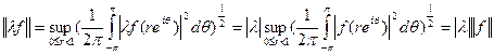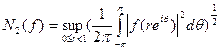 Пусть D—открытый единичный круг в комплексной плоскости C,тогда пространством Харди называется пространство голоморфных функций в области D,для которых число