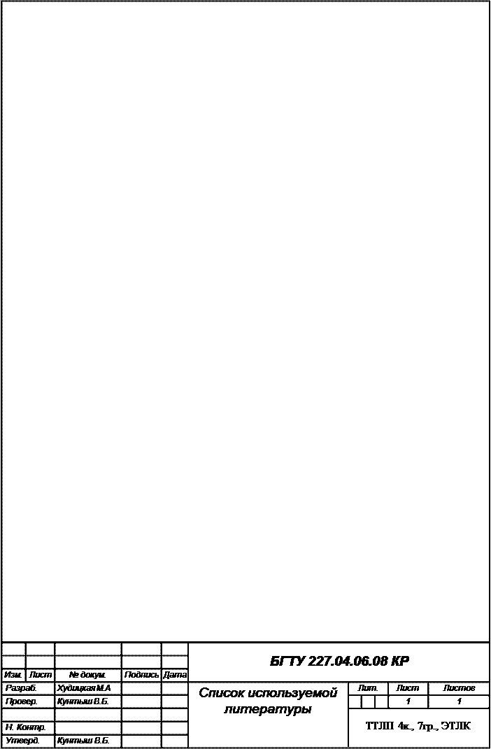 1. Лебедев П.Д., Щукин А.А. Теплоиспользующие установки промышленных предприятий. М: «Энергия», 1970. 2. Клецкий А.В. Теплофизические свойства фреона -22.-Москва -1970.-76с. 3. Нащокин В.В. Техническая термодинамика и теплопередача.- М.: «Высшая школа»,1975.-489с. 4. Янтовский Е.И., Левин Л.А. Промышленные тепловые насосы.- М.:Энергоатомиздат,1989.-128 с. 5. Теплообменные аппараты холодильных установок[под ред. А.А.Гоголин]. Л, «Машиностроение».:1973.-328с 6. Андрижиевский А.А., Володин В.И. Преддипломная практика и дипломное проектирование. Мн.: БГТУ 2003.