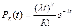 где Рк(t) – вероятность поступления точно к требований за t время; t – величина фиксированного интервала времени; l - параметр потока (математическое ожидание числа требований, поступивших в единицу времени); lt – параметр закона Пуассона. Величину l определяют по формуле