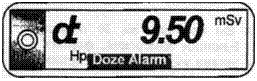 Предварительная сигнализация дозы осуществляется: а) по причине, если превышен порог предварительной сигнализации эквивалента дозы; б) звуковая сигнализация - On: 50 ms Off: 150 ms; в) отображение на дисплее - мигают сообщение "Доза" и предупреждающий символ. (Доза все еще отображается на дисплее); г)подтверждение снимает звуковой сигнал, но не меняет информацию на дисплее - чтобы подтвердить предварительную сигнализацию дозы, нажать и удерживать по крайней мере 3 секунды кнопку переключения.