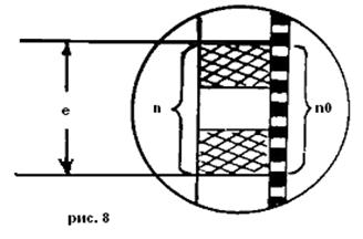 Із сказаного вище (див. формулу (2)) випливає, що для визначення збільшення зорової труби необхідно знати фокусні віддалі об'єктива і окуляра, або ж величини зображень предмета на сітчатці ока при спостереженнях озброєним і неозброєним оком. Так як фокусна віддаль об'єктива і окуляра не завжди бувають відомими, то дуже часто збільшення труби визначають експериментально, шляхом порівняння зображень, одержаних на сітчатці при розгляданні предмета озброєним і неозброєним оком. Для визначення збільшення зорової труби цим методом розглядають одночасно одним оком через зорову трубу, а другим безпосередньо довгу лінійку з великими ічіткими поділками /одна поділка світла, друга темна/, поставлену вертикально на такій віддалі від очей, щоб ця відстань була велика в порівнянні з довжиною тубуса зорової труби іщоб поділки шкали було ще добре видно неозброєним оком. В такому випадку спостерігач буде бачити картину, подібно тій, яка зображена на рис. 8, де великі поділки – це поділки, які бачить око через зорову трубу, малі ж поділки лінійки бачить неозброєним оком.