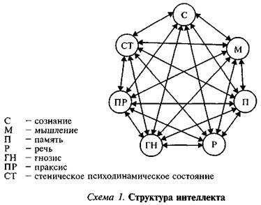 Задатки — природные предпосылки развития способностей. Их сутью являются врожденные индивидуально-психологические свойства, связанные с морфологическими и функциональными особенностями головного мозга и органов чувств. Способности — свойства личности, дающие ей возможность успешно обучаться, приобретать знания, умения, навыки выполнения какой-либо определенной деятельности (овладение языком, занятия рисованием, музыкой, математикой и т. п.). При этом способности проявляются не в самих знаниях, умениях и навыках, а в скорости их приобретения. Наивысшей степенью способностей является одаренность. Интеллект - это проявление (показатель) интегративной деятельности высших мозговых функций(схема 1) (структура интеллекта): речи, мышления, гнозиса (предметное восприятие), праксиса (действия с предметами), памяти, сознания и стенического психодинамического состояния (управляемое социальное поведение – навыки общения, эмоции, чувства).