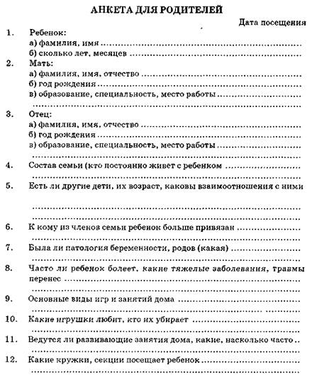 I. Сведения о состоянии здоровья. П. Данные об особенностях развития и воспитания до поступления в дошкольное учреждение. III Данные о проведении диагностической работы. IV. Данные о развивающей и психокоррекционной работе. V. Данные о совместной работе с воспитателями. В этот раздел входят: запись бесед с воспитателями, нянями; характеристика, которую они дают ребенку; рекомендации психолога; совместно принятые решения; анализ хода и результатов выполнения решений и рекомендаций. VI. Данные о совместной работе с родителями. В этот раздел входят: запись бесед с родителями; советы, даваемые психологом; совместные решения, анализ хода и результатов их выполнения. VII. Копии заключений для третьих лиц и инстанций, даваемых психологом по поводу ребенка. VIII. Заключения специалистов, полученные в ответ на запрос психолога по поводу ребенка.