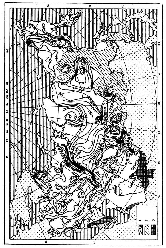 Рис. 2. Карта средних слоев стока талых вод