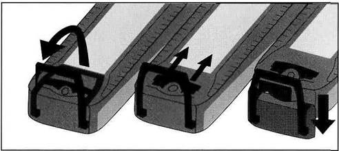 Рисунок 6 – Положения позиционной скобы прибора: Прибор даёт возможность производить измерения несколькими способами. Для измерения от задней плоскости прибора установить скобу перпендикулярно (повернуть до момента её фиксации в этом положении рисунок 6а). Зафиксировать прибор для измерения как показано на рисунке 7. Для измерения из внутренних углов, необходимо развернуть позиционную скобу параллельно продольной оси прибора (до момента её фиксации). Повернуть прибор нижней панелью вверх, слегка надавливая на скобу влево, выполните её разворот (рисунок 6). Зафиксировать прибор для измерения как показано на рисунке 8. Встроенный в прибор датчик автоматически определит положение позиционной скобы и будет учитывать его при последующих измерениях расстояний.