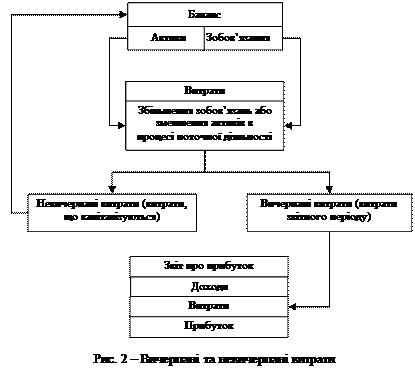 Вичерпані та невичерпані витрати Збільшення засобів пов’язано із збільшенням невичерпних витрат, а використання засобів для забезпечення основної діяльності підприємства - із збільшенням вичерпних витрат. Невичерпані витрати мають місце тоді, коли засоби (основні засоби, товарно-матеріальні цінності тощо) закуповуються, а вичерпані витрати тоді, коли ці засоби використовуються у виробництві, в організації торгівельної діяльності (рис. 2).