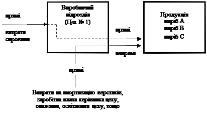 Групування затрат за об’єктами та суб’єктами господарського процесу (місцями виникнення - центрами затрат і центрами відповідальності) Місцем виникнення, або центром, затрат називатимемо місце, де вони фактично утворилися. Наприклад, у цеху для випікання хліба було використано борошно, а в конторі управління - електричну енергію для живлення лампочки, що освітлює кімнату. Основними місцями виникнення (центрами) затрат можуть бути вид продукції (рис.3) або вид виробництва, або структурний (виробничий чи технологічний) організаційний підрозділ. Центром відповідальності називають місце, де виникають правові відносини між учасниками господарських процесів. За своєю природою кожне робоче місце - це центр затрат. Проте в обліку до такої деталізації, як правило, не вдаються. Розрізняють два види центрів відповідальності, а саме: 1) центр відповідальності за затратами; 2) центр відповідальності за фінансовими результатами. Основними центрами відповідальності можуть бути: працівник, бригадир (майстер), начальник цеху (дільниці), начальник (завідувач) служби, головний механік, головний інженер та інші, адміністрація підприємства в цілому. Затрати на виробництво у бухгалтерському внутрішньогосподарському (управлінському) обліку групуються на рахунках у двох напрямах: за елементами затрат та елементами собівартості (тобто статтями затрат). У внутрішньогосподарському обліку значний вплив на групування затрат мають комплексні види затрат, які формують відповідні центри затрат.