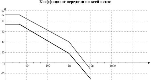 Критерий: система является устойчивой, если на той частоте, на которой фаза достигает величины (180 - ∆φз), коэффициент передачи по петле ОС оказывается меньше 1 (меньше 0 дБ).