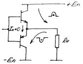 Положительную волну обеспечивает каскад на npn, а pnp закрыт, и тока I0 нет. Отрицательную волну – наоборот. ηТЕОР. > 70%.