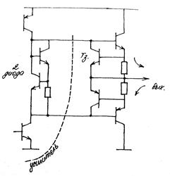 Двухтактный каскад на транзисторах разных типов проводимостей.
