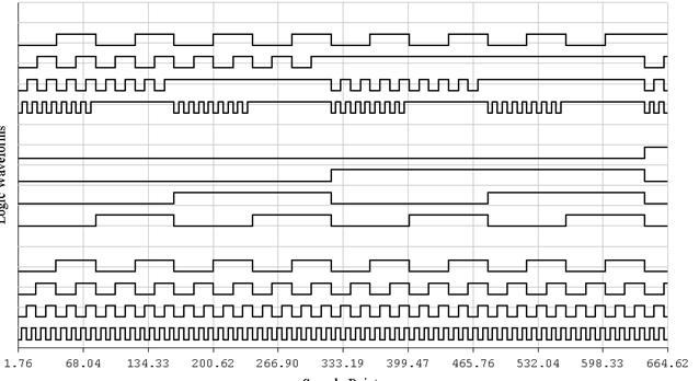Для анализа работы АЛУ используются временные диаграммы. Для этого в файле ALU2.ewb подключается логический анализатор, а в роли счетчика используется логический конвертор (рис. 35).