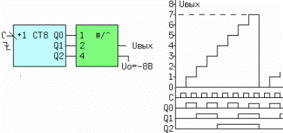 Рисунок 6.3 - Однополярный ЦАП и его передаточная характеристика
