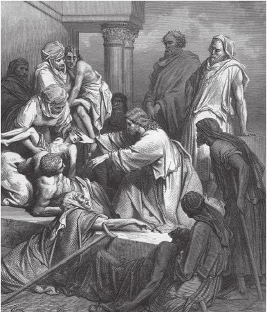 Г. Доре. Христос исцеляет больных Сократ (ок. 469—399 гг. до н.э.) – это целая глава в истории воспитания и культуры человечества. Сын ваятеля Софроникса и Фэнареты, он не принадлежал к знати и сливкам общества. Хотя сам он утверждал, что его род восходит к Дедалу (а тот, как известно, происходил от Гефеста, сына Зевса). В юности Сократ имел намерение пойти по пути отца, но на роду ему написано было иное. Говорят, в юности оракул Аполлона в Дельфах причислил его к числу мудрых людей. И тот же оракул посоветовал его отцу, когда Сократ был еще ребенком: «Предоставь мальчику делать все, что ему вздумается, не насилуй и ни в чем не ограничивай его наклонностей. Молись за него Зевсу Покровителю и Музам. И не беспокойся о нем, ибо он в себе самом содержит лучшего руководителя жизни, чем тысячи учителей и воспитателей». Отец так и сделал. Смолоду он с величайшим энтузиазмом изучал естественные науки, исследовал философские течения (физику, космологию, софистику). Это было время мыслителей и строителей (тогда возвели Парфенон), историков, философов, государственных мужей и поэтов (Геродот, Перикл, Еврипид, Протагор). Человек необычайных дарований ступил на стезю духовной деятельности в 30 лет, став спутником и учеником философа Архелая. Вот как говорит о Сократе Алкивиад: «В военном Потидейском походе Сократ превосходил всех своими трудами, голодал, отличался таким терпением, что другие перед ним ничего не значили. В пирушках он не ест и не пьет, хотя в тех случаях, когда товарищество принуждало его, он был впереди всех, но пьяным никогда не бывал, что доказывает и настоящая попойка. Легко переносит стужу, идет в легкой одежде в мороз, ходит босиком по льду. Он презирает изнеженность солдат, решителен и отважен… Он самоотверженно выносит из сражения раненого Алкивиада, с самозабвением хлопочет о его награде. В сражении он отступает величаво, с презрением и спокойствием взирая на друзей и врагов. По делам нет подобного Сократу между людьми – ни из древних, ни из современников». В нем столько любви, что этот язычник близок образу Христа. Жил он в Периклов век. Афины находились в расцвете своей силы и могущества. Сократ и душой и телом был связан с Афинами. Он ни разу не покидал города за исключением тех случаев, когда воинский долг отправлял его на защиту родины. Сократ не любил путешествий, полагая, что сельский пейзаж и деревья везде одинаковы, а новые виды не научат его ничему новому. Как некогда Христос обращался в первую очередь к иудеям, так Сократ обращался прежде всего к своим соотечественникам: «Прежде всего я обращаюсь к афинским гражданам, которые ближе мне по крови». Как позже скажет о нем Цицерон, Сократ «призвал философию с небес на землю и стал насаждать ее в городах и домах людей». В своих спорах с софистами он пытался доказать, что подлинное знание возможно, хотя и не достигнуто. Он откровенно признавался в невежестве. Это не помешало ему согласиться с дельфийским оракулом, что он самый мудрый из всех (так как признает свое невежество). Одной из главных своих задач он считал пробуждение в людях жажды познания, готовности сделать что-то для ликвидации собственного или чужого невежества, то есть излечить больных. Поэтому он охотно подтвердил дельфийский девиз «Познай самого себя». Дело в том, что только через такое самопознание возможно достиже