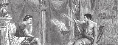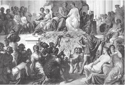 Олимпиада, мать Александра. Барельеф То, что не удалось сделать грекам (т.е. объединить греков), сделали македонцы – Филипп и Александр. Александр был достойным сыном своего отца. Он появился на свет от брака Филиппа и Олимпиады. Легенды доносят, что он был прямым потомком Ахилла, героя легендарной Троянской войны. Накануне той ночи, когда новобрачные уединились в покоях, Олимпиаде привиделось, что раздался удар грома и молния ударила ей в чрево, от этого удара вспыхнул огонь. Филиппу же привиделось, что он после соития запечатал чрево жены печатью, на которой был вырезан лев. Все эти сны истолковали так, что будущее дитя «будет обладать отважным, львиным характером». Говорили также, что видели змея, обвившегося вокруг тела спящей Олимпиады. Впоследствии возникли разного рода домыслы, будто бы сын ее родился от божественного змея. Говорили, сама мать открыла Александру тайну его рождения перед персидским походом. Известно, что Олимпиада ревностнее других была привержена всякого рода орфическим таинствам и оргиям в честь Диониса. В этих шествиях часто несли змей, что наводило неподдельный страх и на мужчин. Подобные увлечения охладили страсть Филиппа, что стал реже бывать в спальне жены. Его можно понять: ведь когда не знаешь, кого найдешь в постели (женщину или змею), даже самая пылкая страсть может улетучиться в мгновение ока… Александр появился на свет в тот день, когда был сожжен храм Артемиды Эфесской. Находившиеся в Эфесе маги сочли это величайшим несчастьем, они кричали, что «этот день породил горе и великое бедствие для Азии» (Плутарх). С младенческих лет Александр проявил способности, которые интерпретировали каждый по-своему. Так, рассказывают, что когда двор Филиппа посетила афинская делегация, та узрела 10-летнего Александра, игравшего на арфе и певшего. Увидев все это, яростный противник Македонии, Демосфен, будто бы насмешливо бросил в его адрес: сей маменькин сынок вряд ли будет когда-либо представлять серьезную опасность для Греции. Однако то, что Александр был воспитан отцом в греческом духе, не помешало ему в дальнейшем стать властелином Греции. Он с детства стремился не только достичь славы отца, но и превзойти ее. Плутарх писал, что Александр, слыша об очередной победе отца или же захвате им нового города, мрачно говорил сверстникам, что его отец успеет захватить все, так что ему ничего в жизни не останется, «не удастся совершить ничего великого и блестящего».