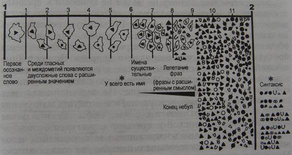 Рис. 8. Развитие языка от стадии небулы до осознанного выражения в грамматической форме