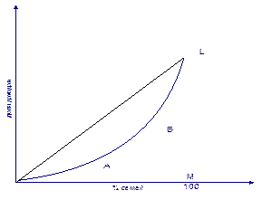 OL – показывает абсолютное равенство в распределении доходов OABL – кривая Лоренца, отражает фактическую неравномерность распределения доходов. Чем больше разрыв между кривой Лоренца и прямой OL, тем больше неравномерность в распределении доходов среди населения.