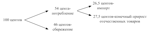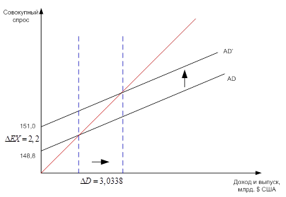 Увеличение уровня дохода с учетом прироста экспорта и мультипликатора расходов (m) составило (см. рис.):