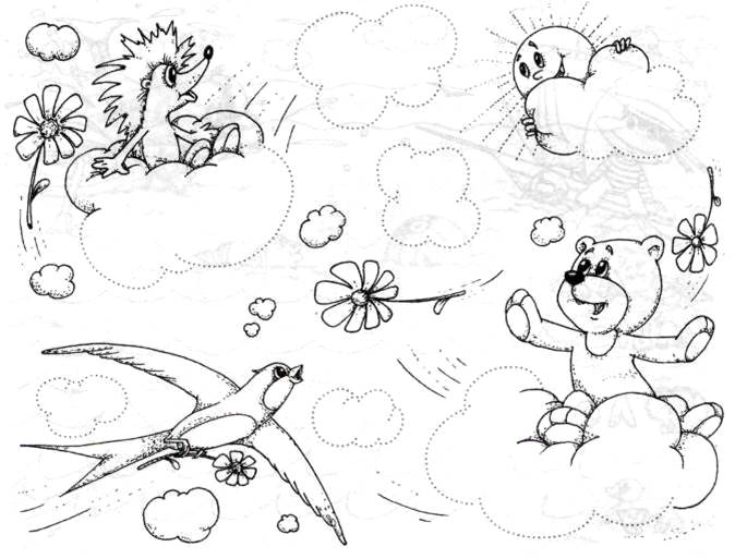 Для того, чтобы полетать на облаках, надо нарисовать их контуры по точкам. Сосчитай облака: «Одно облако, два облака...».