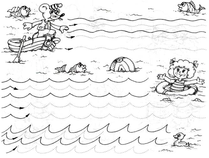 Проведи свою лодочку так, чтобы она не задела соседнюю волну. На каждой волне произноси: «Ла..., ло..., лы..., лу..., ала...» и т.д.