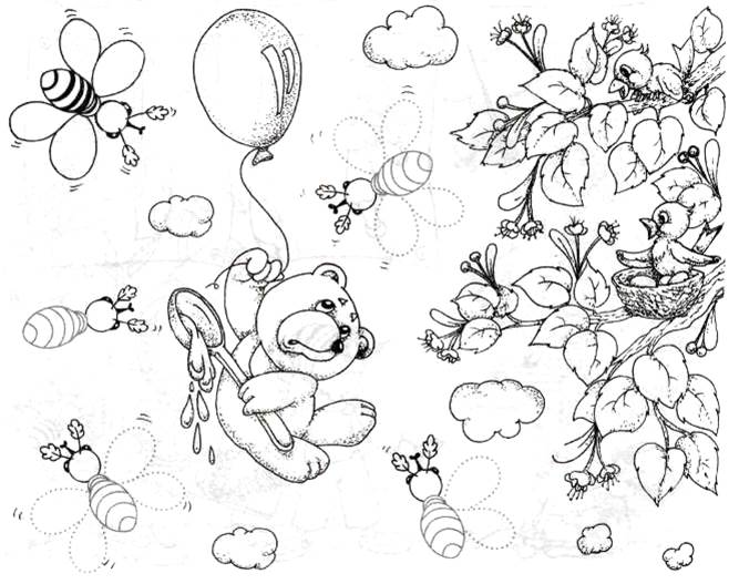 Нарисуй побольше ягод малины для медвежонка. Чётко проговаривай слово «малина».