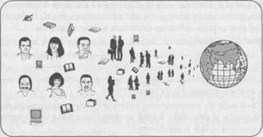 Рис. 2.4. Изображение моего видения работы над темой лидерства I Мой план включает создание семинаров, посвященных лидерству, а также руководств, книг и других инструментов, которыми могут быть охвачены индивиды, организации и социальные системы по всему миру. Данный план будет реализовыватъся в контексте глобальной сети людей, которые стремятся к прогрессу всего человечества.