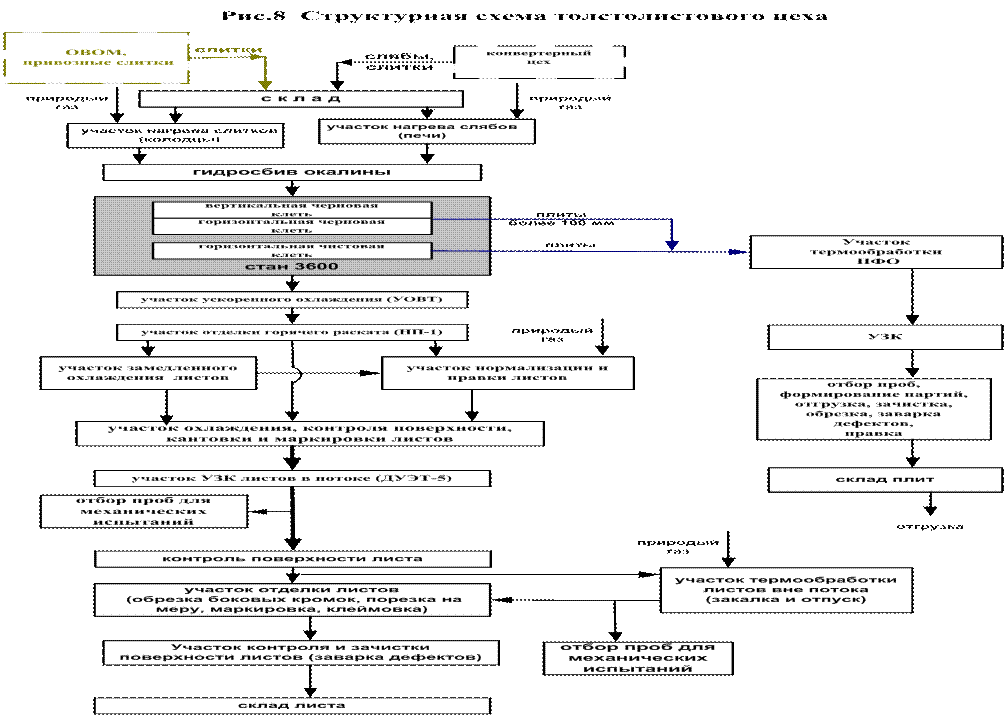 Участок нагрева металла перед прокаткой Слябов к нагреву под прокатку. Складирование, контроль и подготовка слитков и Слябы из конвертерного цеха в толстолистовой перевозятся на железнодорожных платформах или автослябовозами поплавочно и поступают на склад слябов, где производят приемку, накопление и подготовку металла к нагреву под прокатку. При подготовке слябов большое значение придаётся зачистке поверхностных дефектов, что экономит трудозатраты при окончательной отделке готового проката. Участок для подготовки слябов оборудован полупортальными магнитными кранами для раскладывания и кантовки слябов на стеллажах.
