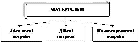 Потреби, що задовольняються товарами, ділять на фізіологічні (матеріальні), соціальні і духовні.