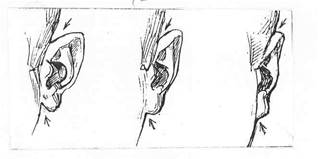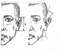Однако, существуют расовые и индивидуальные отличия в строении, размерах, форме и положении ушных раковин. Статистически доказано равенство длины ушной раковины и носа, но у горных таджиков и бурят длина ушной раковины больше длины носа примерно на 2 см. В возрастном аспекте рост уха происходит до 15 лет, затем задерживается и ускоряется после 30 лет. На красоту лица и его гармонию, кроме размеров, влияет ушно – головной угол и угол отстояния мочки (рис. 16).
