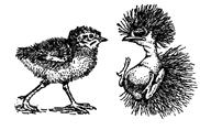 Происходит овуляция — разрыв стенки яичника и выход яйцеклетки в полость тела. Яйцеклетка должна быть оплодотворена в начальной части яйцевода, затем яйцеклетка покрывается яйцевыми оболочками: белковой оболочкой, в следующем отделе — двумя подскорлуповыми пергаментообразными оболочками, в маточном отделе образуется известковая скорлупа, пигменты, тонкая надскорлуповая оболочка, сохраняющая яйцо от проникновения бактерий. Весь период прохождения яйца по яйцеводу у курицы составляет около суток. Скорлупа состоит на 90% из углекислого кальция, пронизана микроскопическими порами, обеспечивающими газообмен развивающегося эмбриона. В курином яйце более 7 тысяч пор, больше их на тупом конце. Скорлупа является источником солей, необходимых для формирования скелета птенца. В отличие от яиц пресмыкающихся, поглощения воды из окружающей среды не происходит, вся вода, необходимая для развития эмбриона, содержится в белке и желтке. Дополнительным источником воды является метаболическая вода, образованная при окислении питательных веществ. Зародышевый диск (ядро яйцеклетки и небольшая часть активной цитоплазмы) находится на верхней части желтка; халазы (канатики) удерживают желток в подвешенном состоянии в центре белка. Это защищает зародыш от толчков, кроме того, при любом положении яйца зародышевый диск находится сверху, ближе к теплу. У многих видов птицы не образуют пар, и спаривание самцов происходит со многими самками; к полигамам относятся глухари, тетерева. Половой диморфизм у полигамов виден особенно отчетливо. Но большинство видов относятся к моногамам, некоторые образуют пары только на период откладки яиц (утки), некоторые — на несколько лет (орлы, лебеди). Пока яйцо движется по яйцеводу (15 — 20 часов), происходит неполное дробление и формируется зародышевый диск, состоящий из двух слоев клеток. У кур насиживание начинается не сразу, а после того, как отложено несколько яиц. Пока насиживание не началось и температура ниже 40 градусов, развитие зародыша приостанавливается и возобновляется после начала насиживания. При развитии зародыша формируются зародышевые оболочки, характерные для амниот: амнион с амниотической жидкостью, сероза и аллантоис. Аллантоис образуется как вырост задней части кишечника и служит для накопления продуктов выделения, зародышевым мочевым пузырем. Позднее он плотно прилегает к скорлупе и является органом дыхания, т.к. в его стенках очень много кровеносных сосудов. Желточный мешок постепенно уменьшается, кроме того, на 10 сутки зародыш начинает заглатывать небольшими порциями амниотическую жидкость, которая служит дополнительным питанием. Позже и белок из белковой оболочки также потребляется зародышем. К этому времени на надклювье формируется "яйцевой зуб" — известковый нарост, с помощью которого птенец прорывает подскорлуповую оболочку воздушной камеры и переходит на легочное дыхание. Через несколько часов, с его же помощью, птенец пробивает скорлупу и освобождается от зародышевых и яйцевых оболочек. Насиживание продолжается у кур около 21 суток. Птенцов птиц можно разделить на две группы: выводковые и птенцовые (рис. 165). К выводковым относятся птенцы отряда курообразные, которые появляются на свет опушенными, зрячими, с открытыми слуховыми проходами. Обсохнув, цыплята уже через нес