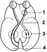 Нервные импульсы поступают по волокнам зрительного нерва в задние части затылочных долей, причем аксоны от левых половин сетчатки обоих глаз направляются в левое полушарие, от правых — в правое. При этом аксоны от медиальных половин пересекаются, образуя зрительный перекрест (рис. 238). При изменении интенсивности освещенности происходит рефлекторное изменение диаметра зрачка. Мышцы-сфинктеры, суживатели иннервируются парасимпатическими нервами, радиальные мышцы, расширители зрачка, иннервируются симпатическими нервами, поэтому страх и боль приводят к расширению зрачков, не даром говорят: «У страха глаза велики». Колбочки в сетчатке делятся на три группы, одни возбуждаются красным светом, вторые — зеленым, третьи — синим. Если не работает какая-то группа колбочек, развиваются заболевания, при которых не человек различает какие-то цвета. При недостатке витамина А не образуется пигмент родопсин в палочках, при этом человек плохо видит в темноте — заболевание называется «куриная слепота». Загрязнение слизистой оболочки век (конъюнктивы), приводит к воспалительным процессам — конъюнктивиту. Чтение в движущемся транспорте, чтение лежа, длительная работа с компьютером приводят к переутомлению ресничной мышцы и снижению остроты зрения. При работе с мелкими объектами должно быть не менее 30-35 см, рабочее место должно быть хорошо освещено.
